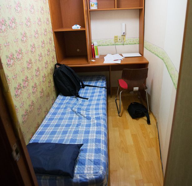 건물의 한 층에 여러개의 방이 있고, 방 안에는 침대와 책상만 있기에 잠자고 공부하는 것 외에는 할 수 있는게 많이 없어