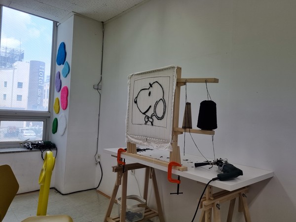 Recently, the tufting works have attracted attention due to their unique drawing style and colorful colors. Not only overseas painters but also in Korea, they tend to enjoy new artistic experiences by challenging this work through the tufting class. It is becoming a new hobby that can relieve stress and increase creativity by creating your own lugs through the tufting gun.