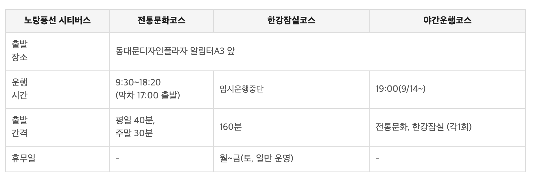 서울시티투어버스 : 코스 및 이용방법