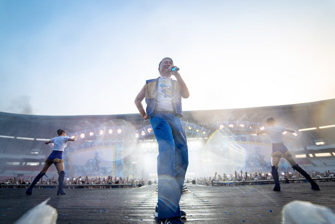 Psy's soaking show features Psy's unique lyrics, which contain popular culture, humor, and social issues, and stage production that can be hit by a water bomb that matches the exciting melody. The combination of excellent lyric writing skills, addictive melodies, and colorful choreography allows the audience to laugh and enjoy, and the stage production that wets this hot heat with water is amazing.