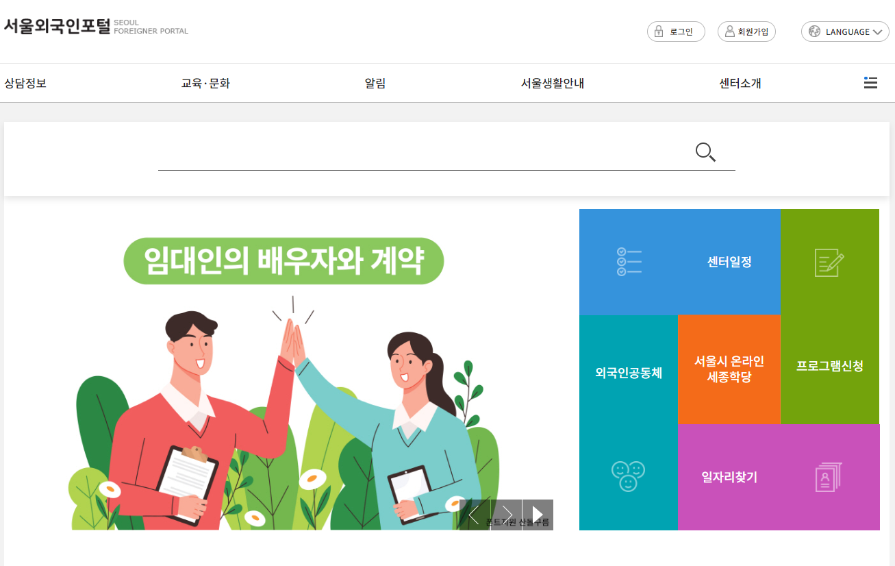 The Seoul Foreigners Portal provides a variety of information so that you can easily start and manage your life in Korea. Here you can find visa applications, health insurance subscriptions, housing and transportation information for foreigners. Also, guides on Korean culture and customs are provided to help foreigners adapt.