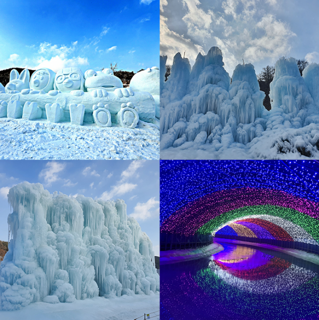 Daegwallyeong Snow Festival takes place in Pyeongchang, Gangwon Province, from mid-January to mid-February, and snow sculptures and light-colored ice sculptures are the main features of the festival. You can also enjoy activities such as sledding and making snowmen.