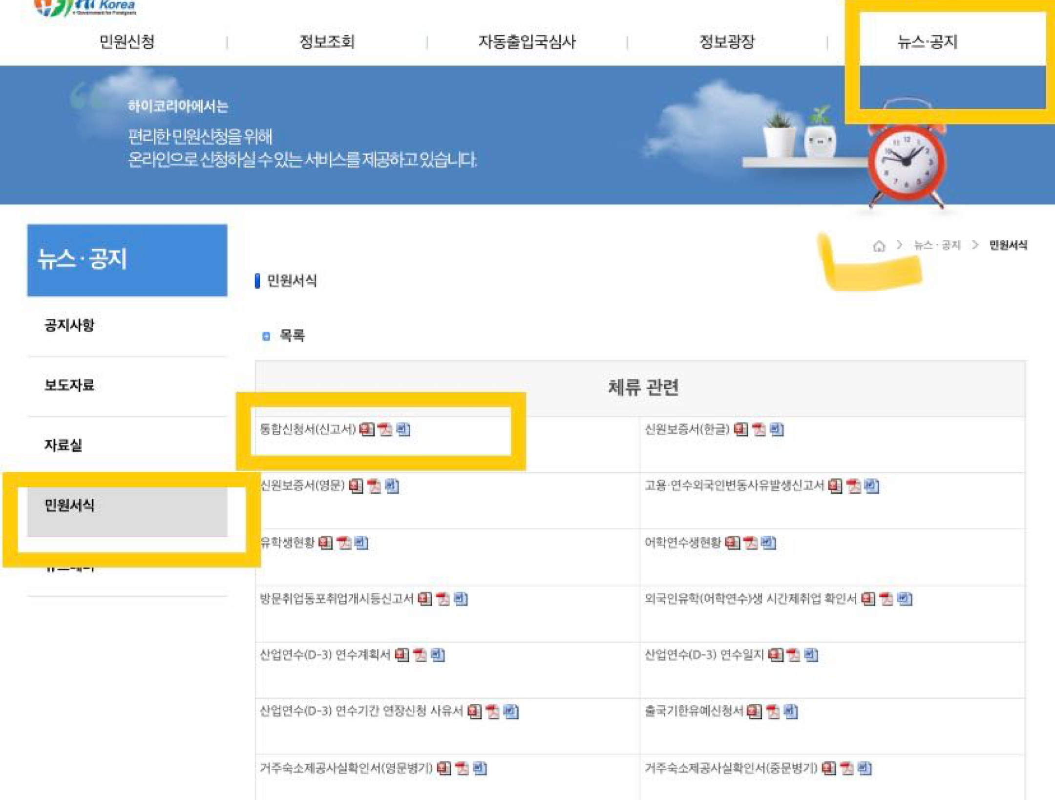 hi Korea 사이트에서 미리 다운로드해서 작성해도 되며,