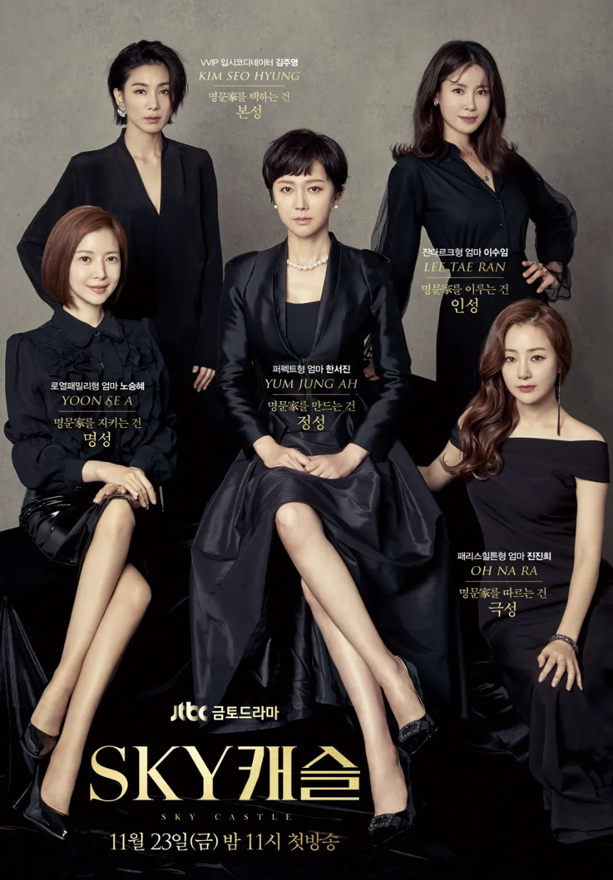 - Plot: A drama about events at Sky Castle, a luxury housing complex where parents use some extreme means to get their children into college. It is a work that makes me think about the values and education system of Korean society.